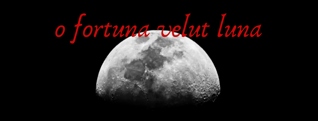 “O Fortuna, velut luna, statu variabilis, semper crescis aut decrescis” translates to “Oh Fortune, like the moon, you are changeable, ever waxing, ever waning.” It’s a bit of a lament about the nature of fortune – essentially that if often ends badly for its recipient.