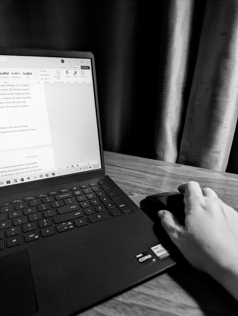 On a writing retreat, unable to sleep. The emotional scenes are always easier to write at 1am.